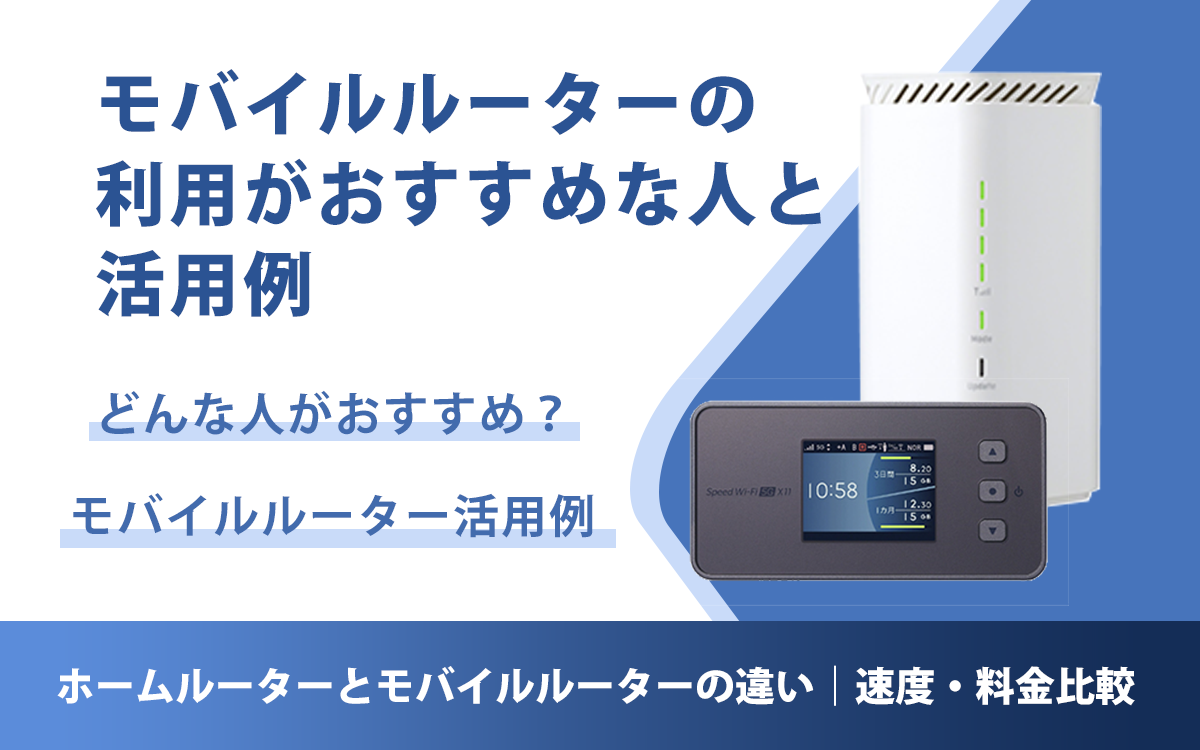ホームルーターとモバイルルーターの違い | 速度・料金比較