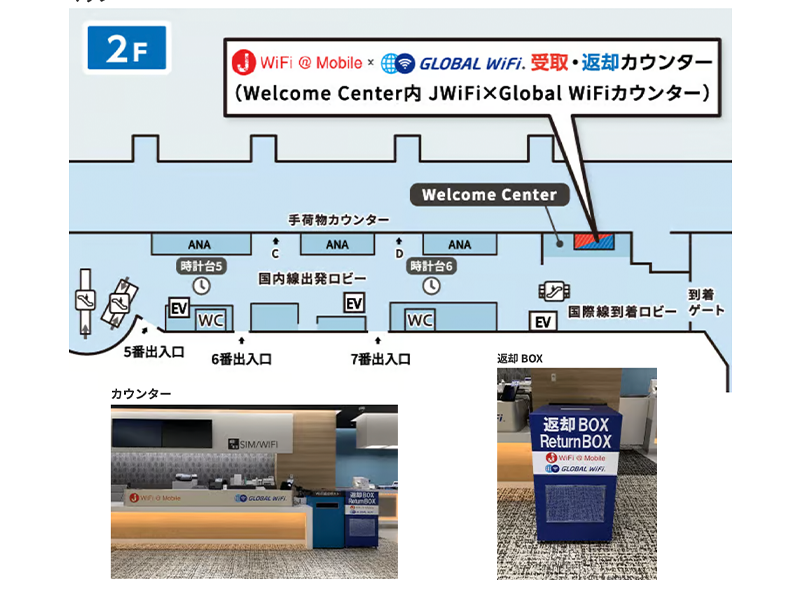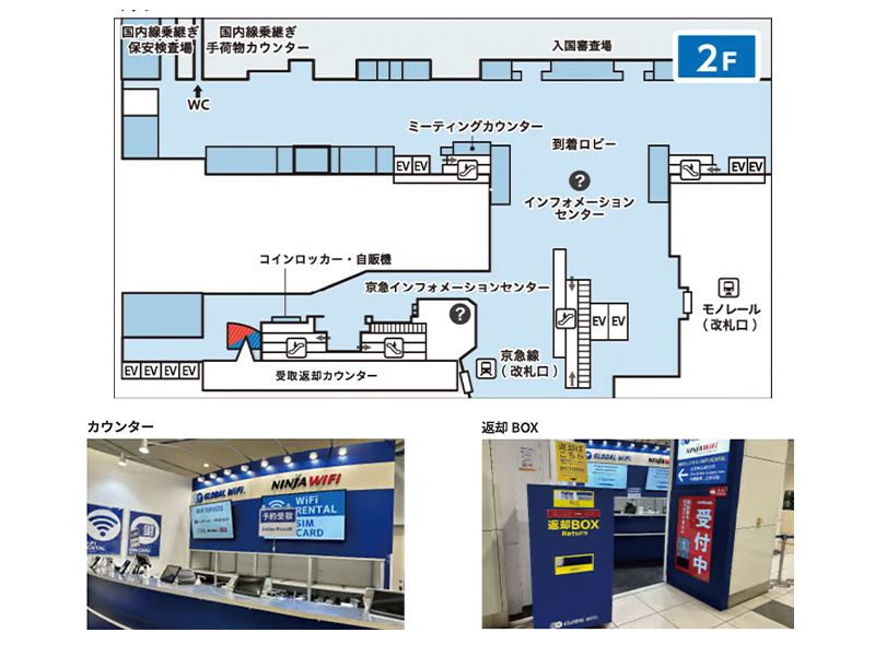 羽田空港のWiFiレンタルどっとこむカウンターでの受取・返却方法